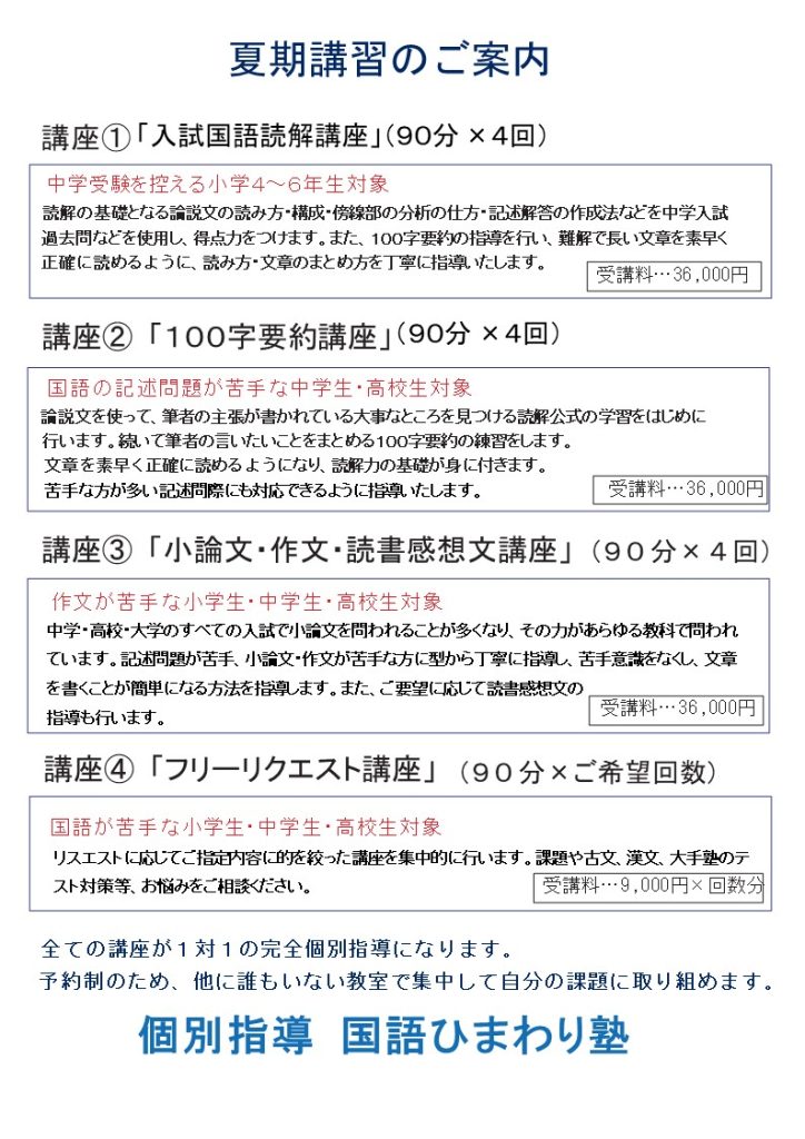 当塾では今年も夏期講習を行います。